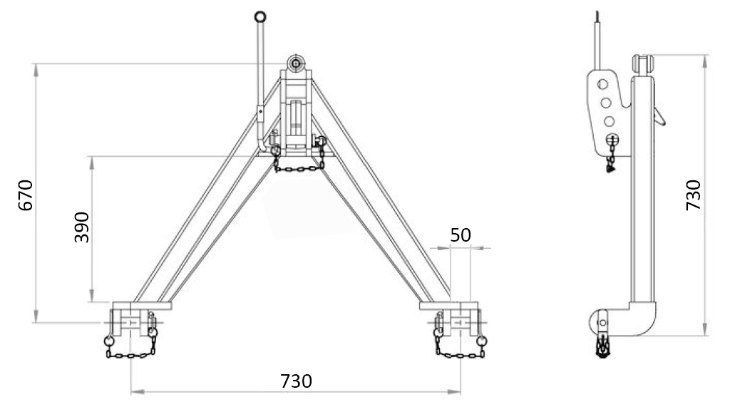 ČELNI TRIKOTNIK PREDNJE TRAKTORSKE HIDRAVLIKE KAT.1 730 mm-1200kg