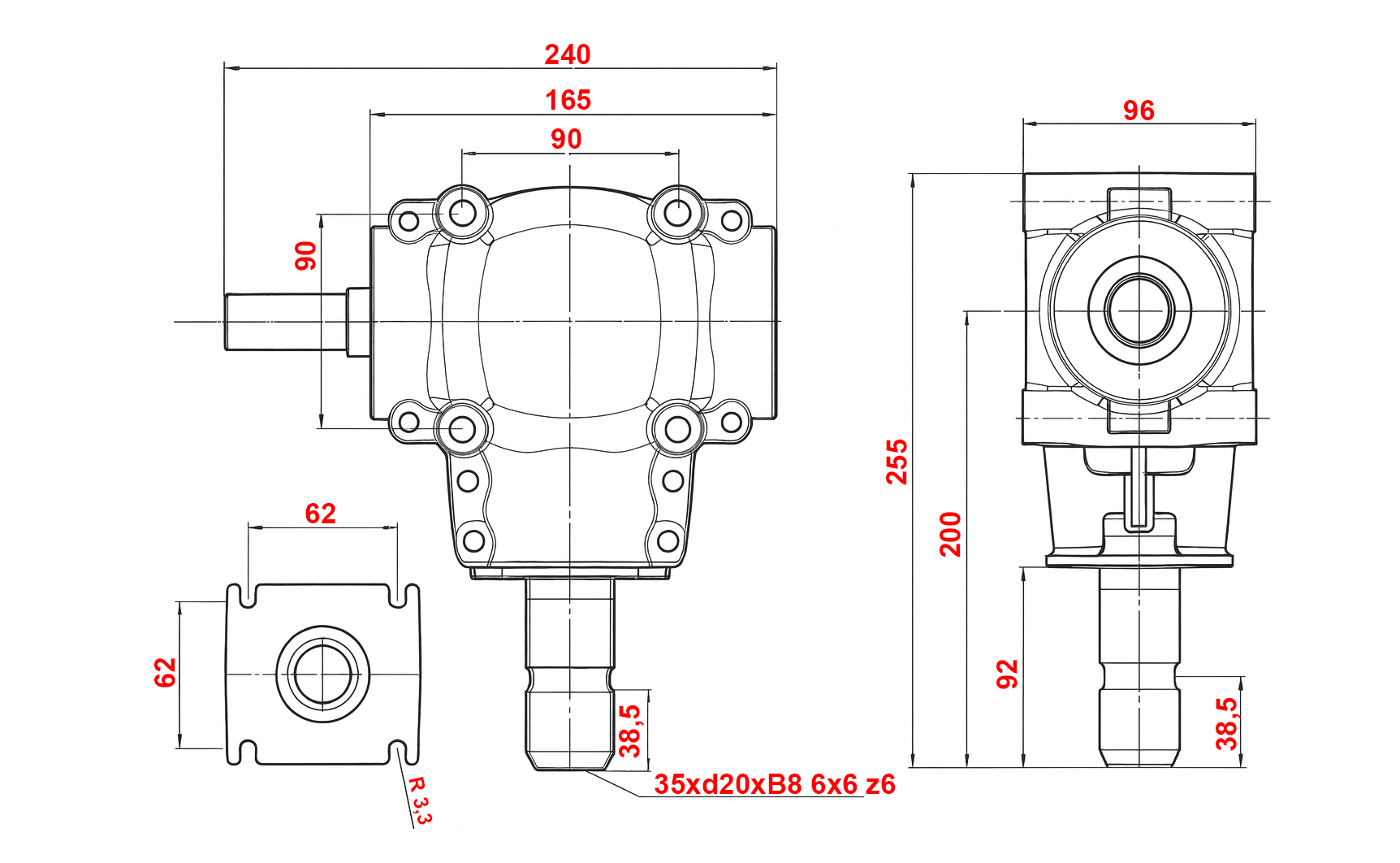 KOTNI REDUKTOR L-150J 1:1,14 (16HP-12kW)