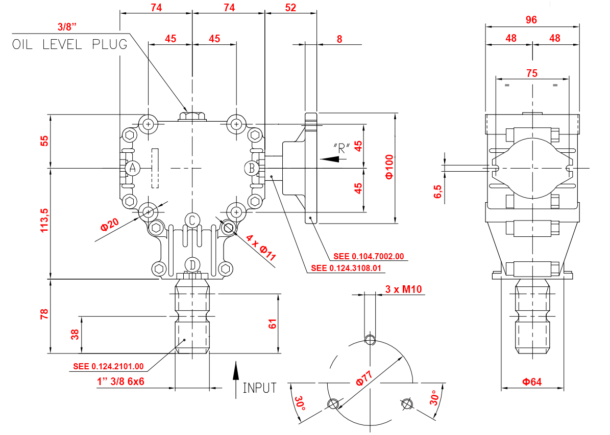 Kotni reduktor je zasnovan za prenos vrtilnega momenta pod pravim kotom in omogoča učinkovito delovanje krožnih žag (cirkularjev) ter drugih strojev, kjer je potrebno spremeniti smer pogona.