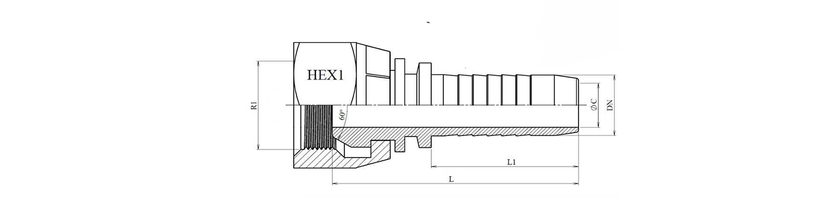 | DN | R1 | L | L1 | HEX 1 | ØC |