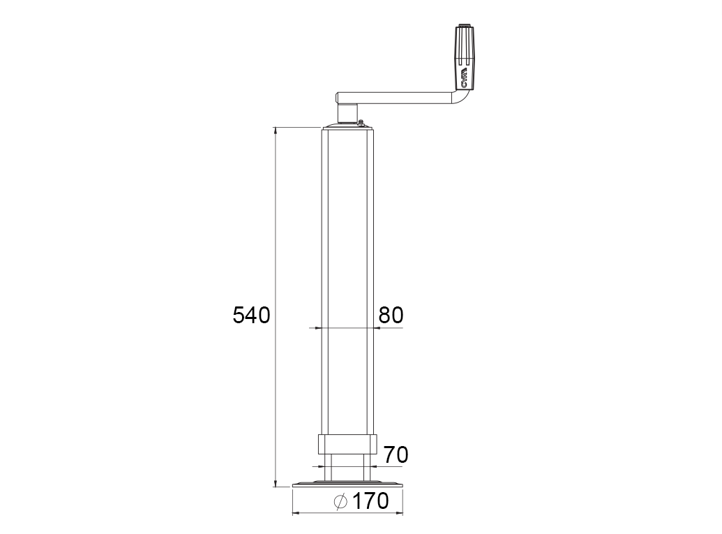 A perna de apoio rosqueada foi projetada para fornecer suporte estável e seguro para trailers. Permite ajuste manual fácil da altura girando o mecanismo rosqueado, garantindo adaptação precisa à superfície do solo e aos requisitos operacionais.
