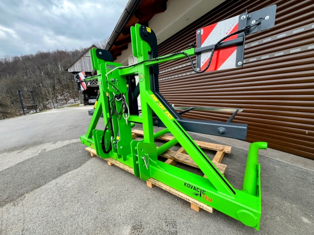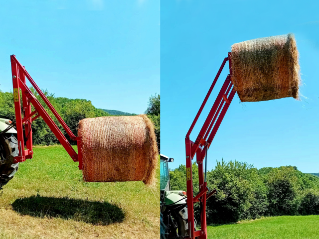 Um cliente da Croácia construiu em casa um carregador de fardos que permite alcançar uma altura de até 3,7 m. Dessa forma, vários fardos podem ser carregados em uma única pilha, reduzindo a área necessária para o armazenamento de fardos.