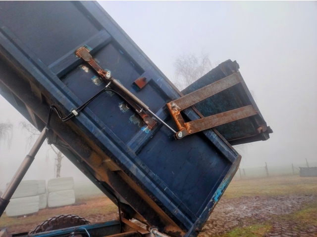 Um cliente da Bélgica anteriormente tinha apenas abertura mecânica para a lateral traseira de seu reboque de trator. Devido a uma carga de trabalho maior, a abertura era bastante demorada, então o cliente a converteu para hidráulica. Certos reforços foram necessários, assim como a conexão de ambos os cilindros hidráulicos com controles na cabine do trator. O cliente agora pode abrir a lateral do reboque da cabine e não precisa sair antes de despejar.