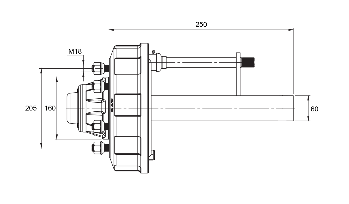 O semi-eixo é destinado para uso em vários tipos de reboques com sistema de freio. O comprimento do semi-eixo é de 250 mm, com capacidade de carga de até 2700 kg.