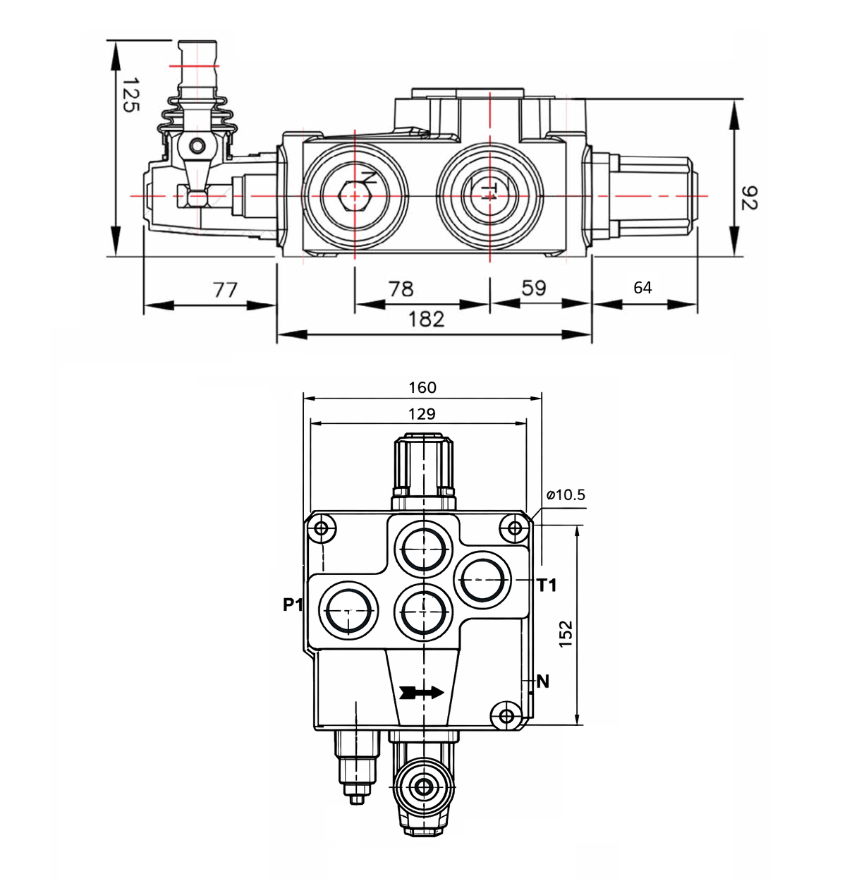 A válvula permite o controle eficiente do fluxo de óleo e otimiza o funcionamento dos consumidores hidráulicos como trituradores de madeira, guinchos, equipamentos de carregamento e outros acessórios. Graças ao seu design compacto e portas claramente marcadas (P, T, A e B), a instalação é simples e a operação segura e confiável.