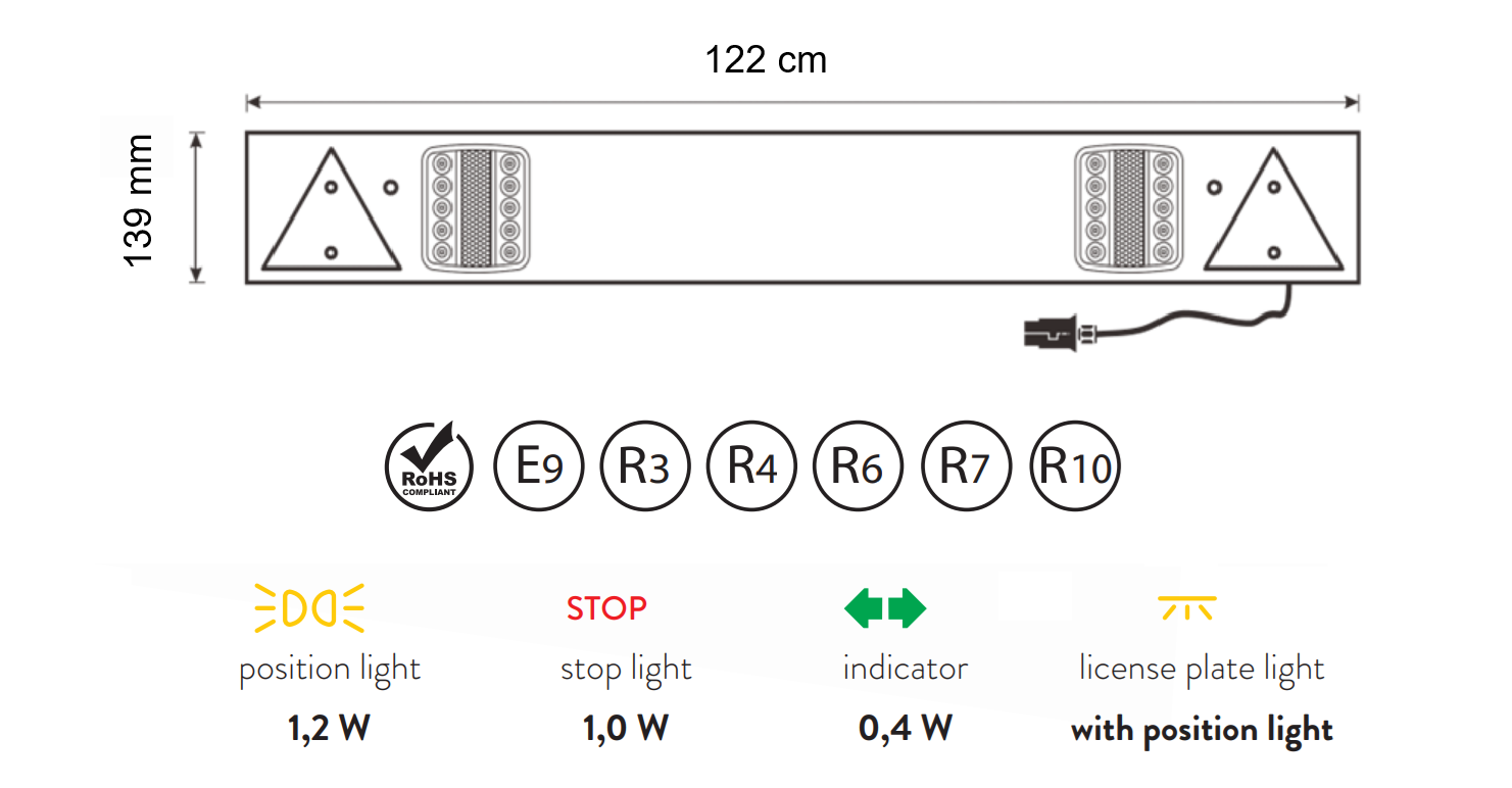 Zanesljiv set LED luči za priklopnike, ki združuje vse glavne svetlobne funkcije v eni enoti in zagotavljajo odlično vidljivost ter varnost v prometu. Set odlikuje nizka poraba energije in dolga življenjska doba.