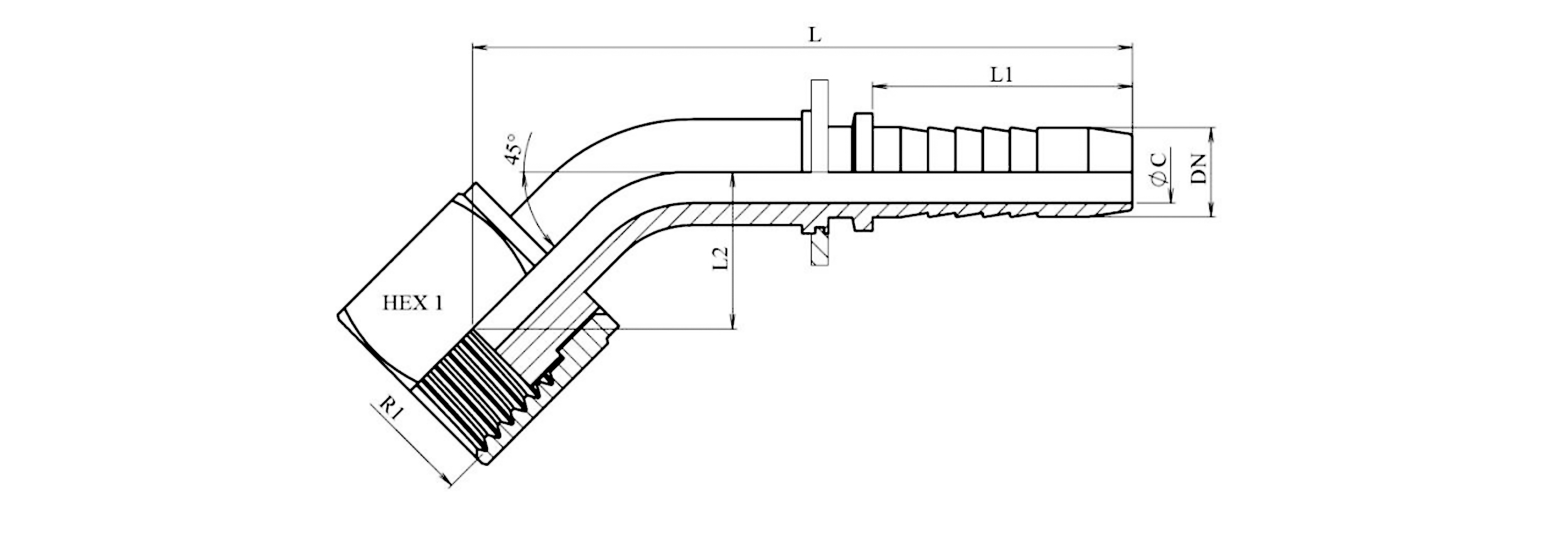 HIDRAVLIČNI PRIKLJUČEK DKORFS ŽENSKI KOLENO 45° DN19-1 7/16-12