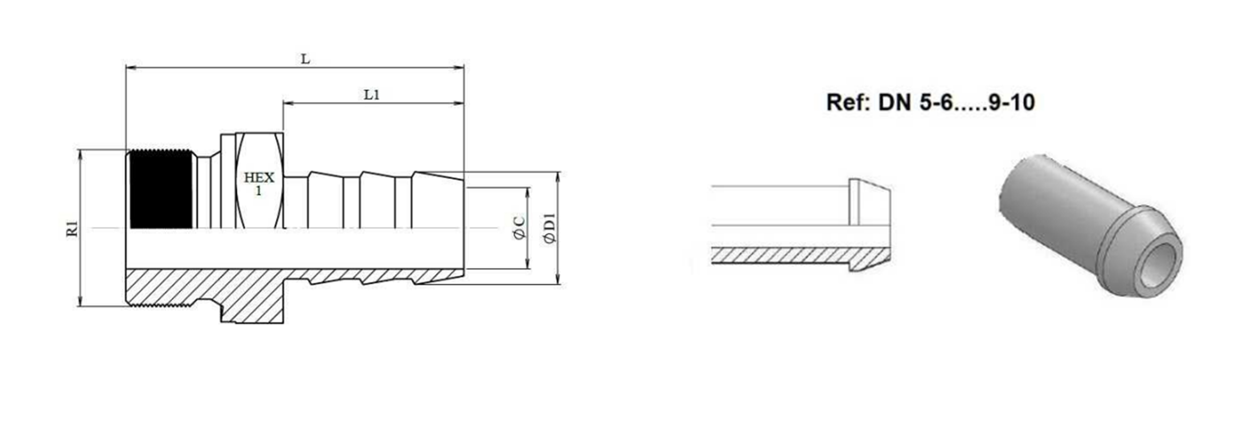 HIDRAVLIČNI PRIKLJUČEK MOŠKI 2 ZA GUMI CEV FI 50