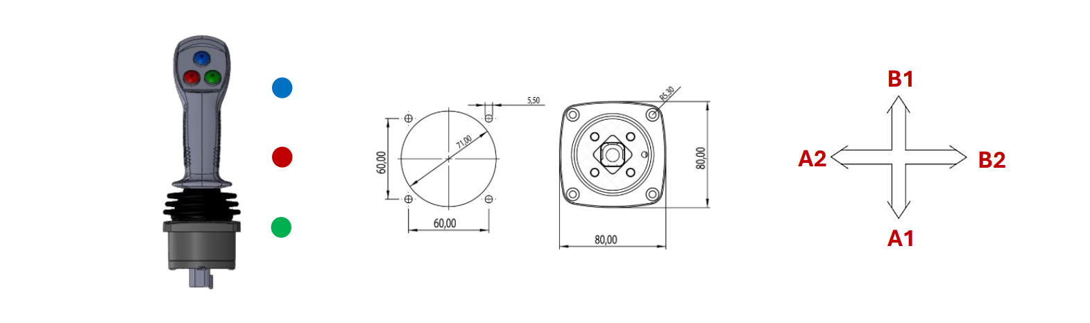 - Botão AZUL: válvula de controle direcional 6/2 (botão momentâneo)